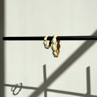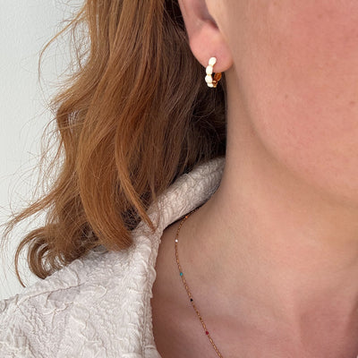 Med detta par Bubble Hoop Cream 14 mm Guldpläterade får du en elegant och modern design med fina färger som kompletterar en enkel vardagslook eller en festlig outfit.