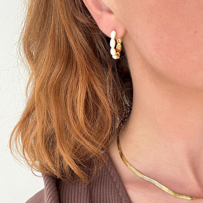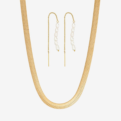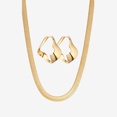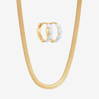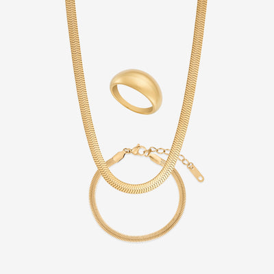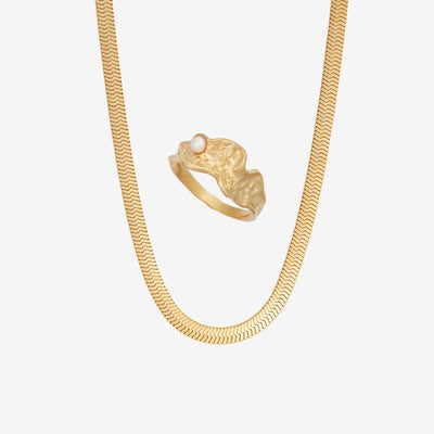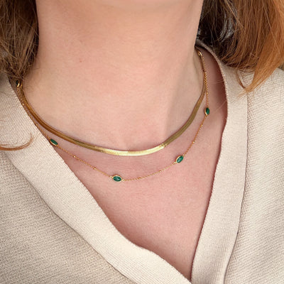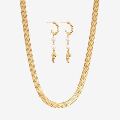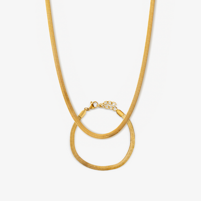 Vårt platta ormhalsband i guldplätering har en enkel men uttrycksfull stil som faller vackert runt halsen. Style det med vårt platta ormarmband för en komplett look.