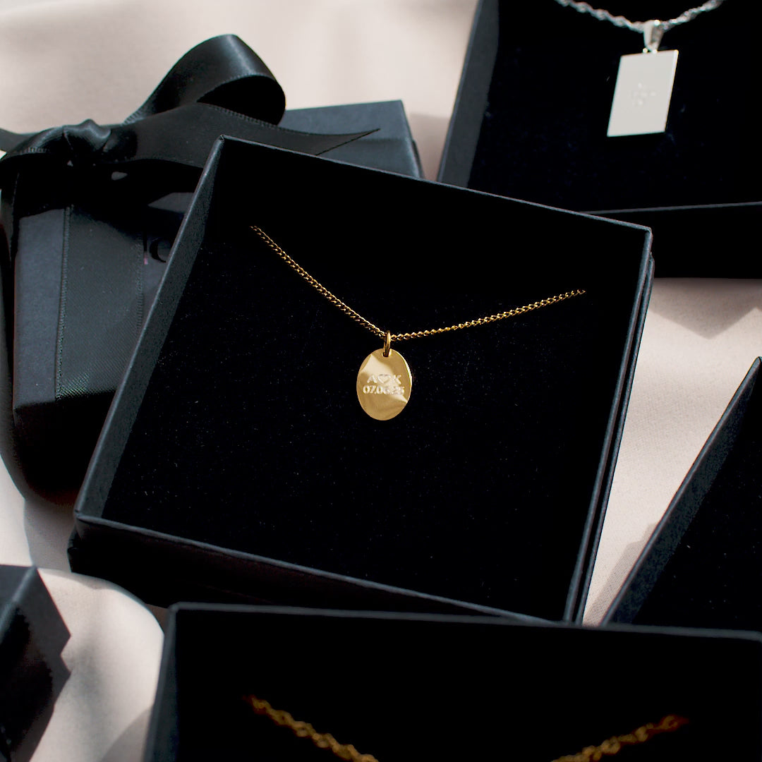Vårt ovala halsband med initialer är vårt ovala, släta halsband graverat med personliga initialer. Välj vilka initialer du vill ha graverade och skapa ett personligt halsband som är perfekt för eget bruk eller som en present till exempelvis mors dag.