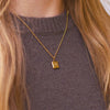 Med vårt Kvadrat Halsband Förgyllt med Gravyr har du möjlighet att personifiera det enkla smycket med det snygga hänget. Du kan till exempel få ett datum, initialer eller en söt linjeteckning graverad.