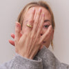 - Ringen är tillverkad av 925 sterlingsilver, förgyllt med 18 karats guld + nanobeläggning. Smycket är nickel- och blyfritt, enligt dansk lagstiftning.