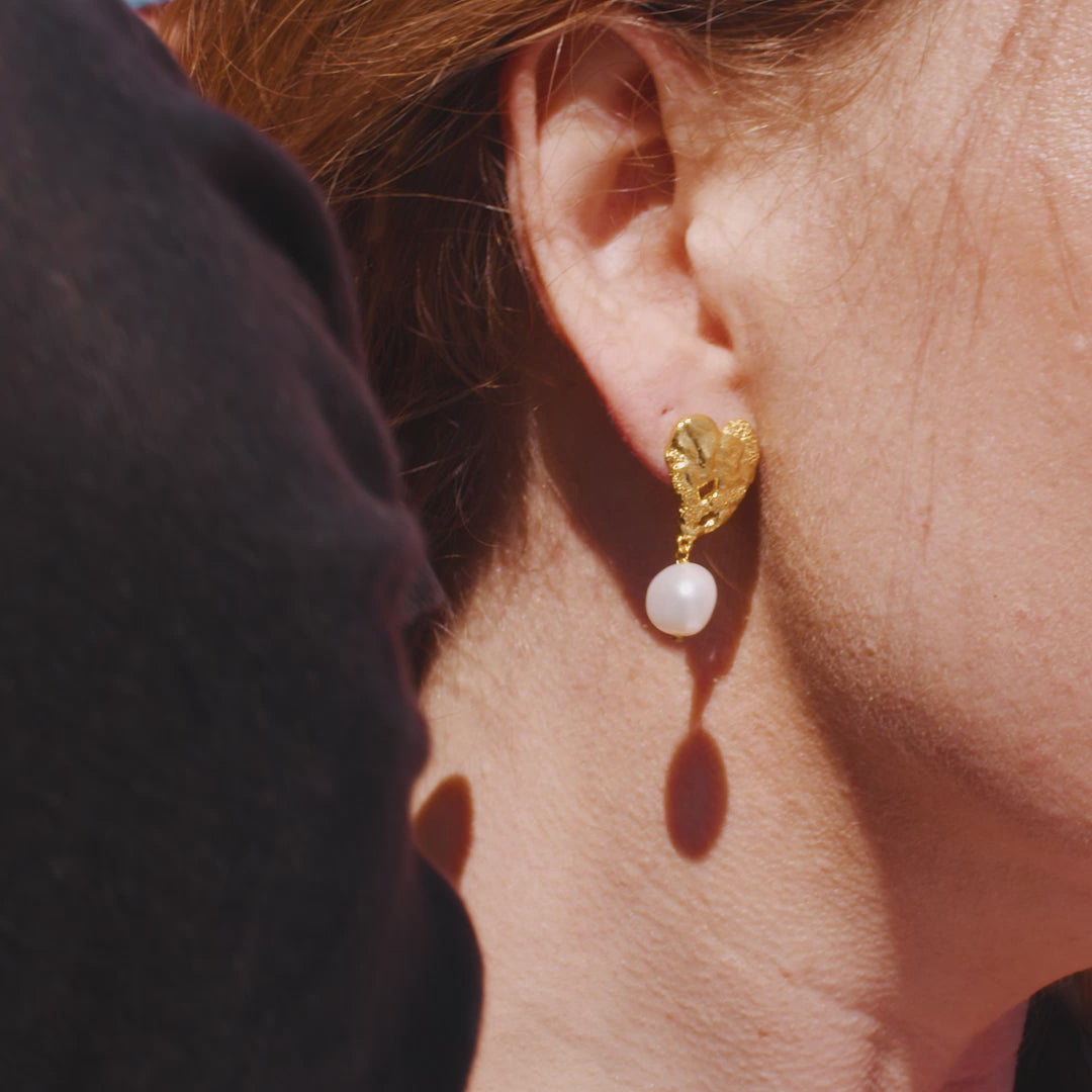 Våra Hjärtpärlörhängen med Förgyllda Pärlor är uttrycksfulla förgyllda hjärtörhängen med både råa och feminina detaljer som ger kant och elegans till ditt uttryck.