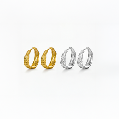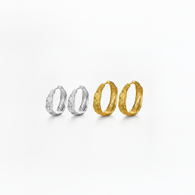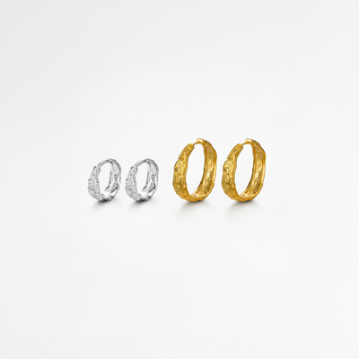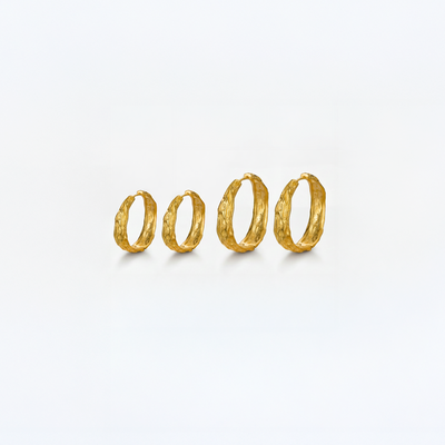 Vår Melted Hoop 33 mm Gold Plated är ett modernt örhänge med en vacker, uttrycksfull textur som ger ett rått utseende.
