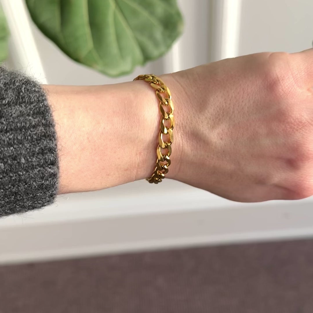 Vårt guldpläterade armband i rustning har en rå och rustik design som utstrålar edge och karisma. Perfekt för alla som älskar grova smycken.