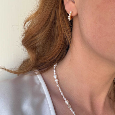 Våra förgyllda pärlörhängen har ett elegant och exklusivt utseende, och den tidlösa designen passar för alla tillfällen.
