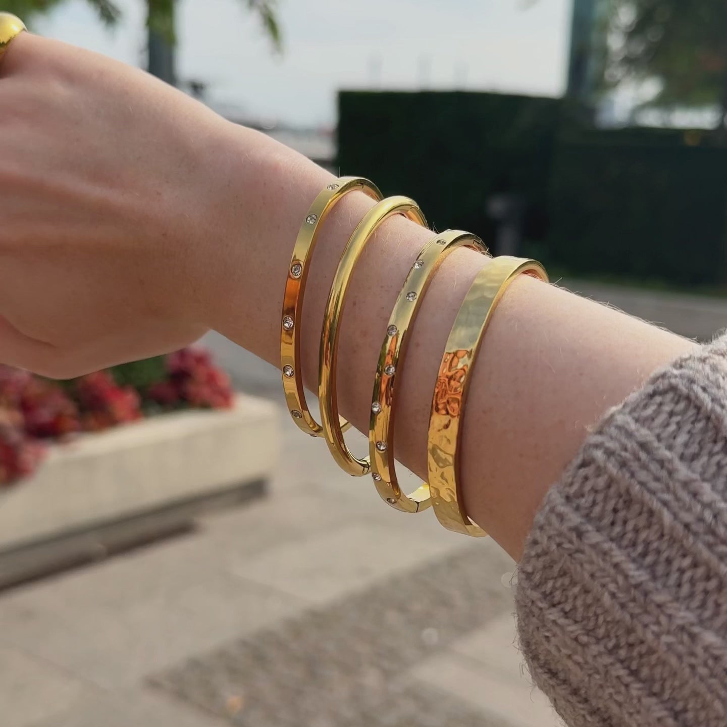 Vårt runda armband i guldplätering har en enkel design som utstrålar massor av elegant elegans. Perfekt för både vardagskläder och festliga looks.