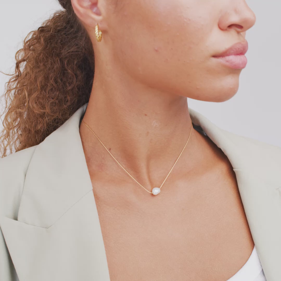 - Halsbandet är av. rostfritt stål pläterat med 18 karat guld + PVD-beläggning och sötvattenspärla. Smycket är vattentätt och allergivänligt, blyfritt och nickelfritt enligt dansk lagstiftning.