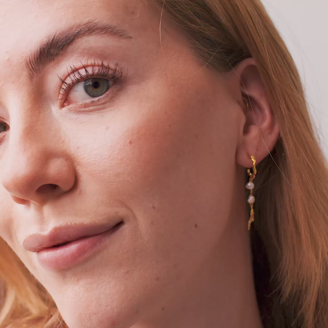 Dinglapärla: 925 sterlingsilver pläterad med 18 karats guld + nanobeläggning och sötvattenspärlor. Smycket är nickel- och blyfritt enligt dansk lagstiftning.