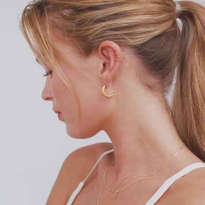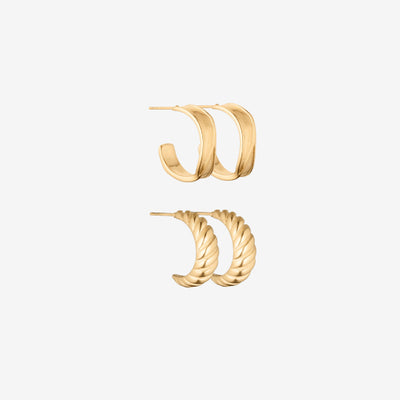Våra fina Vredet Hoops i guldplätering kombinerar klassisk elegans med ett modernt uttryck. Den perfekta stilen för både en avslappnad vardagslook och en utflykt på stan.